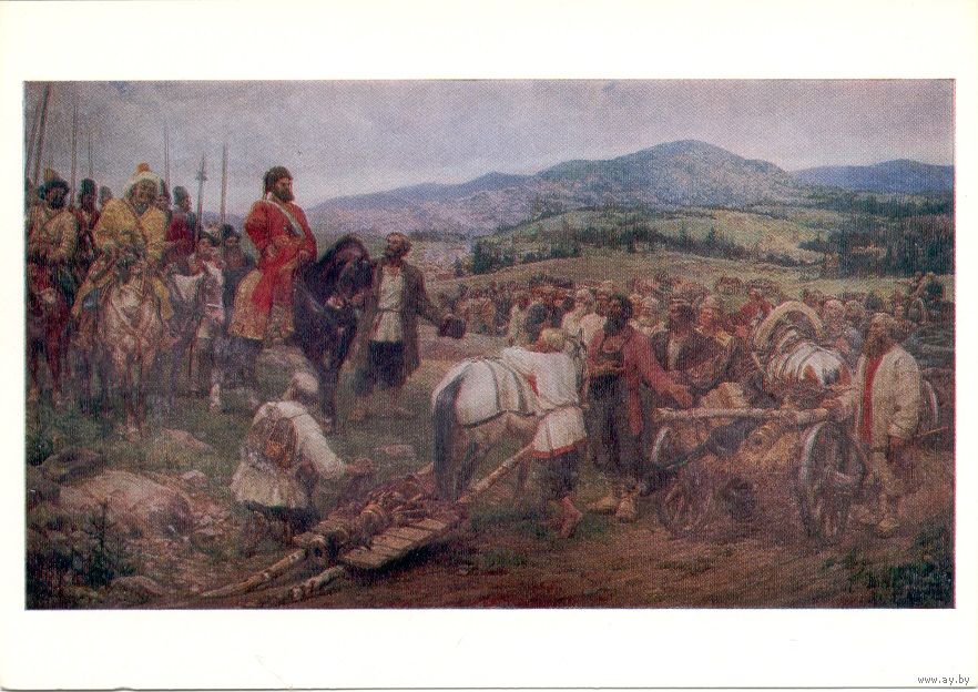 Открытка СССР. М.И. Авилов и др. Помощь уральцев Пугачеву.