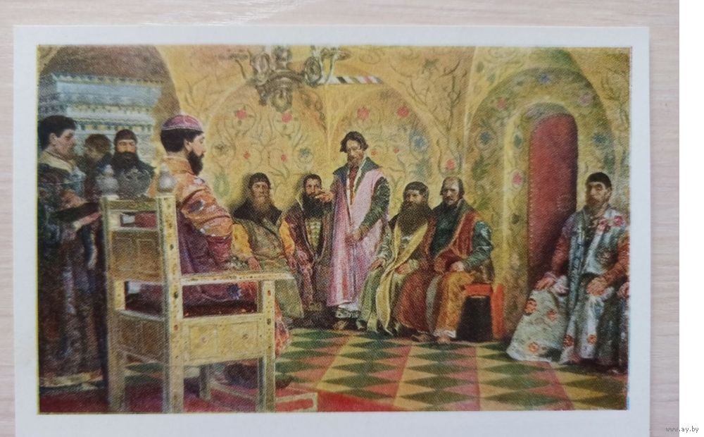 Открытка СССР. Сидение царя Михаила Федоровича с боярами. Рябушкин. 1961г