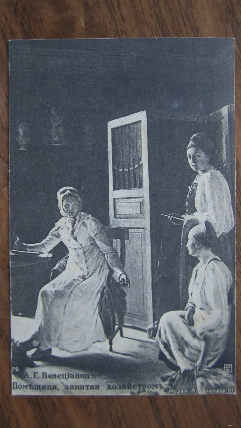 Открытка старинная. Венецианов. Помещица, занятая хозяйством