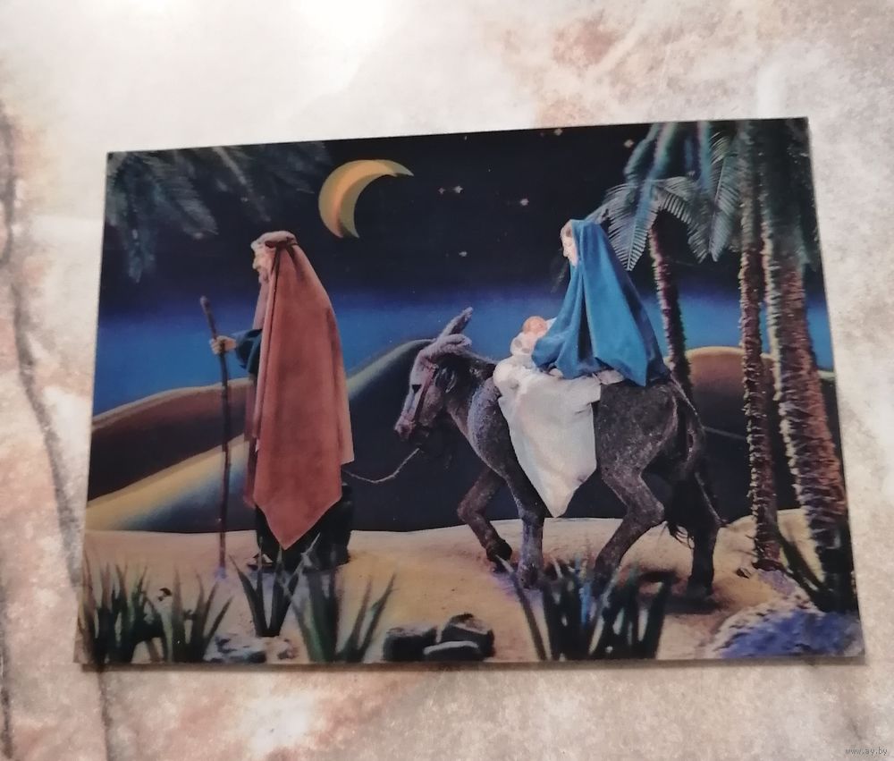 Открытка стерео 3 D. Япония времен СССР. Иосиф и Мария с младенцем