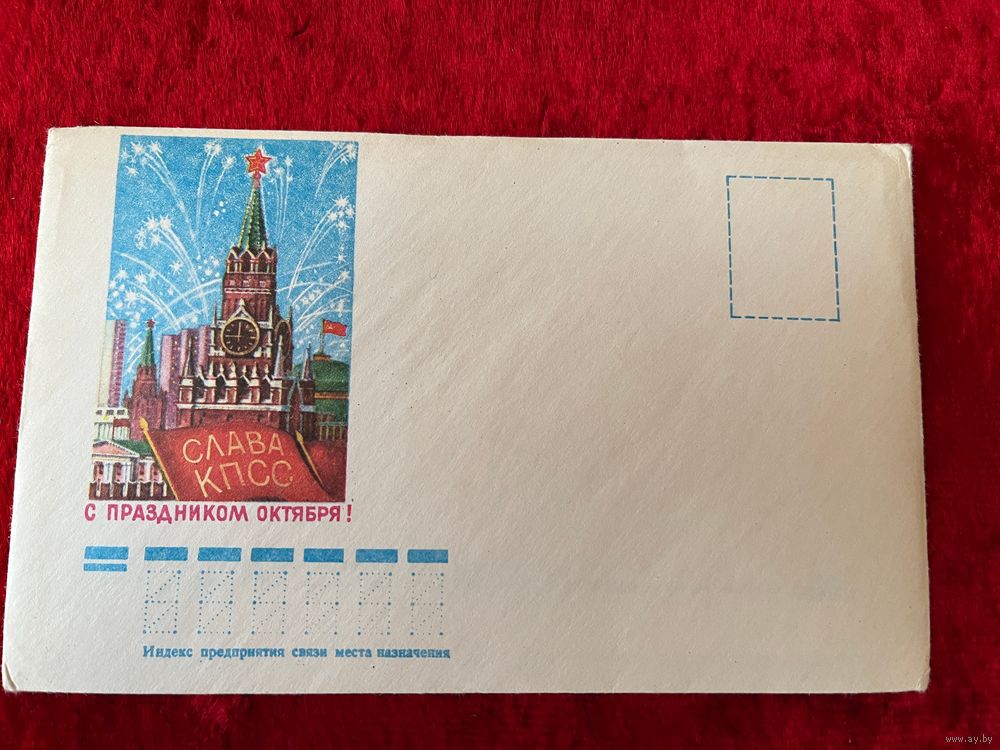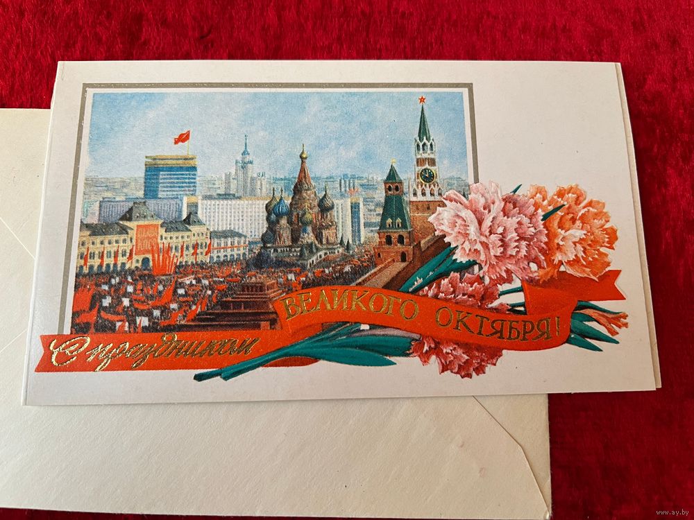 Открытка в конверте. С праздником великого октября! Художник С. Боролин 1981 год
