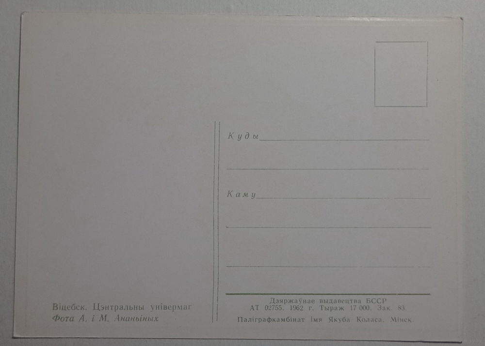 Открытка Витебск центральный универмаг 1962 год тираж всего 17000 фото Ананьиных