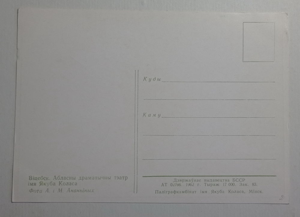 Открытка Витебск областной театр имени Якуба Коласа ныне филармония 1962 год тираж всего 17000 фото Ананьиных
