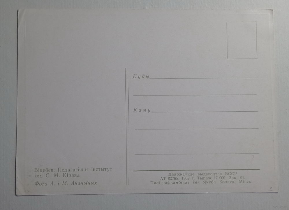 Открытка Витебск педагогический институт имени С.М.Кирова 1962 год тираж всего 17000 фото Ананьиных