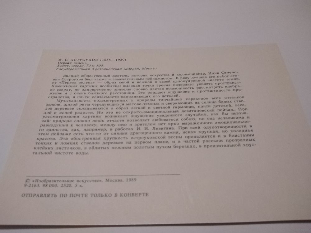 Открытка з 1989г. И. С. ОСТРОУХОВ. Первая зелень.