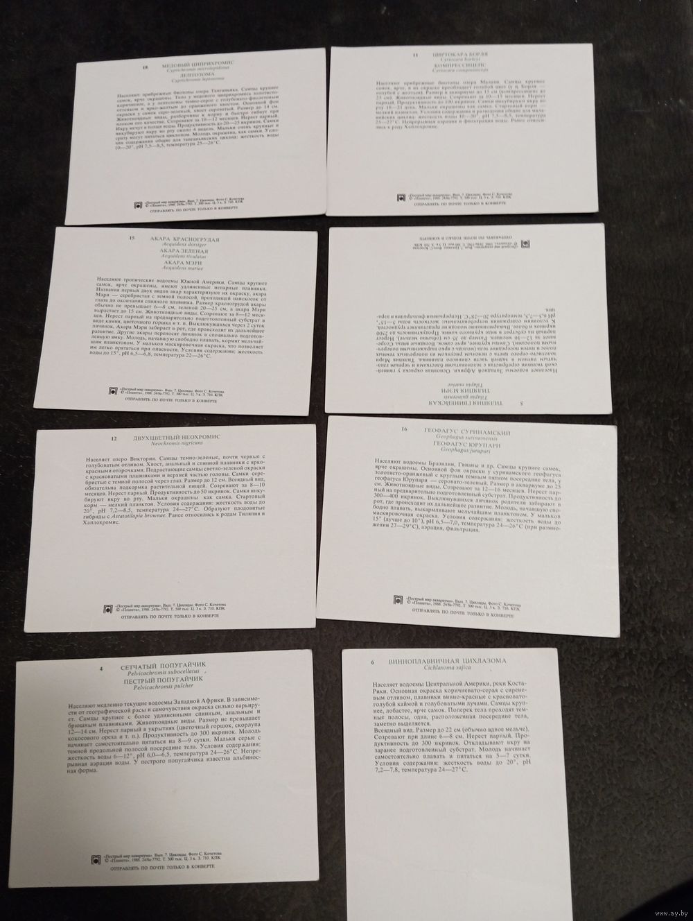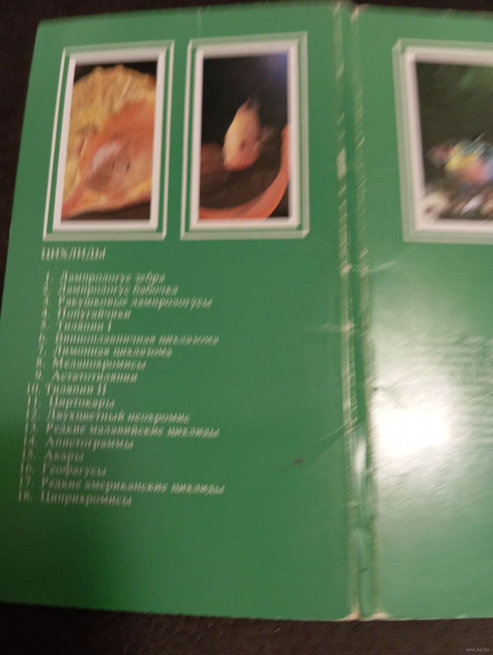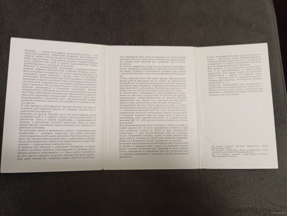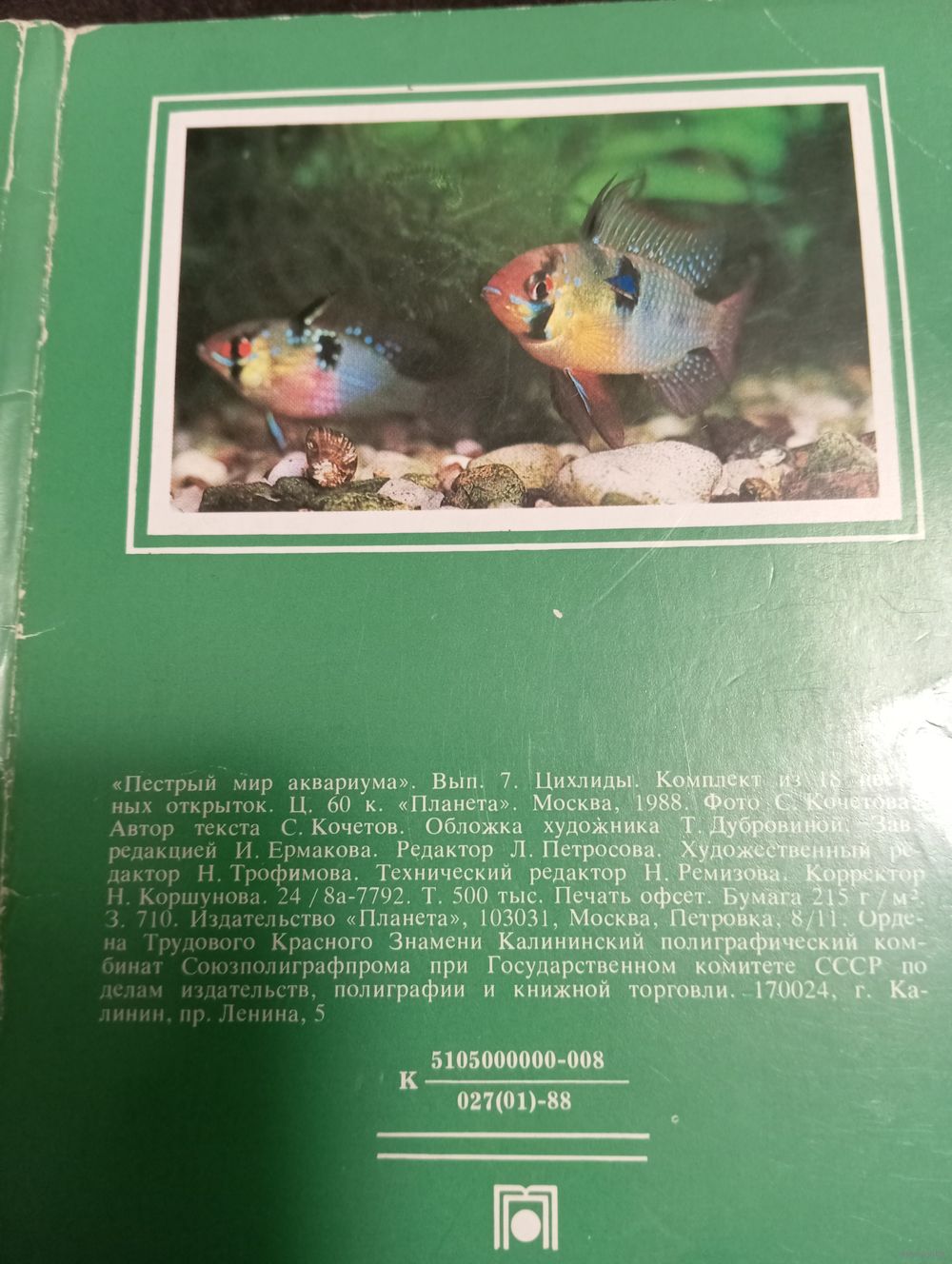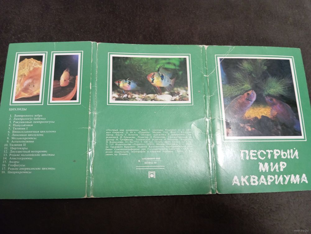 На изображении показан буклет из серии открыток «Пестрый мир аквариума», выпуск 7, посвященный цихлидам. Общая информация