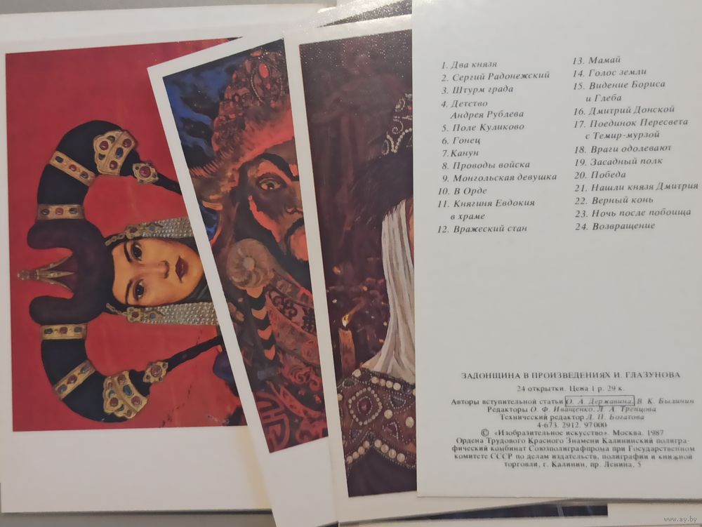 Открытки Художник И. С. Глазунов "Задонщина" . Набор из 24 шт. Издание 1987 года. Приобретая дополнительно несколько из выставленных лотов , возможна скидка в разумных пределах и экономия на пересылке.