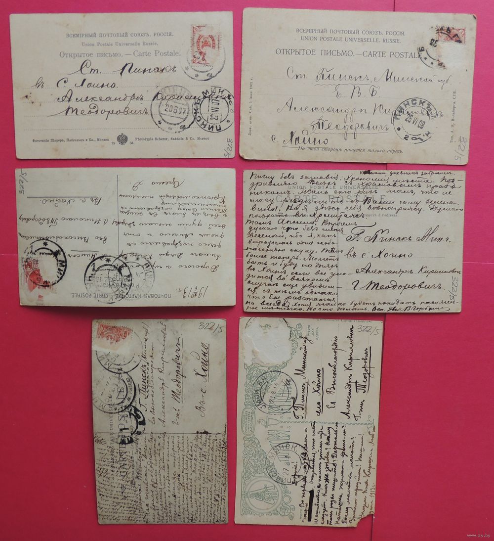 Открытки РИ, до 1917 г., получатель г.Пинск Минской губернии