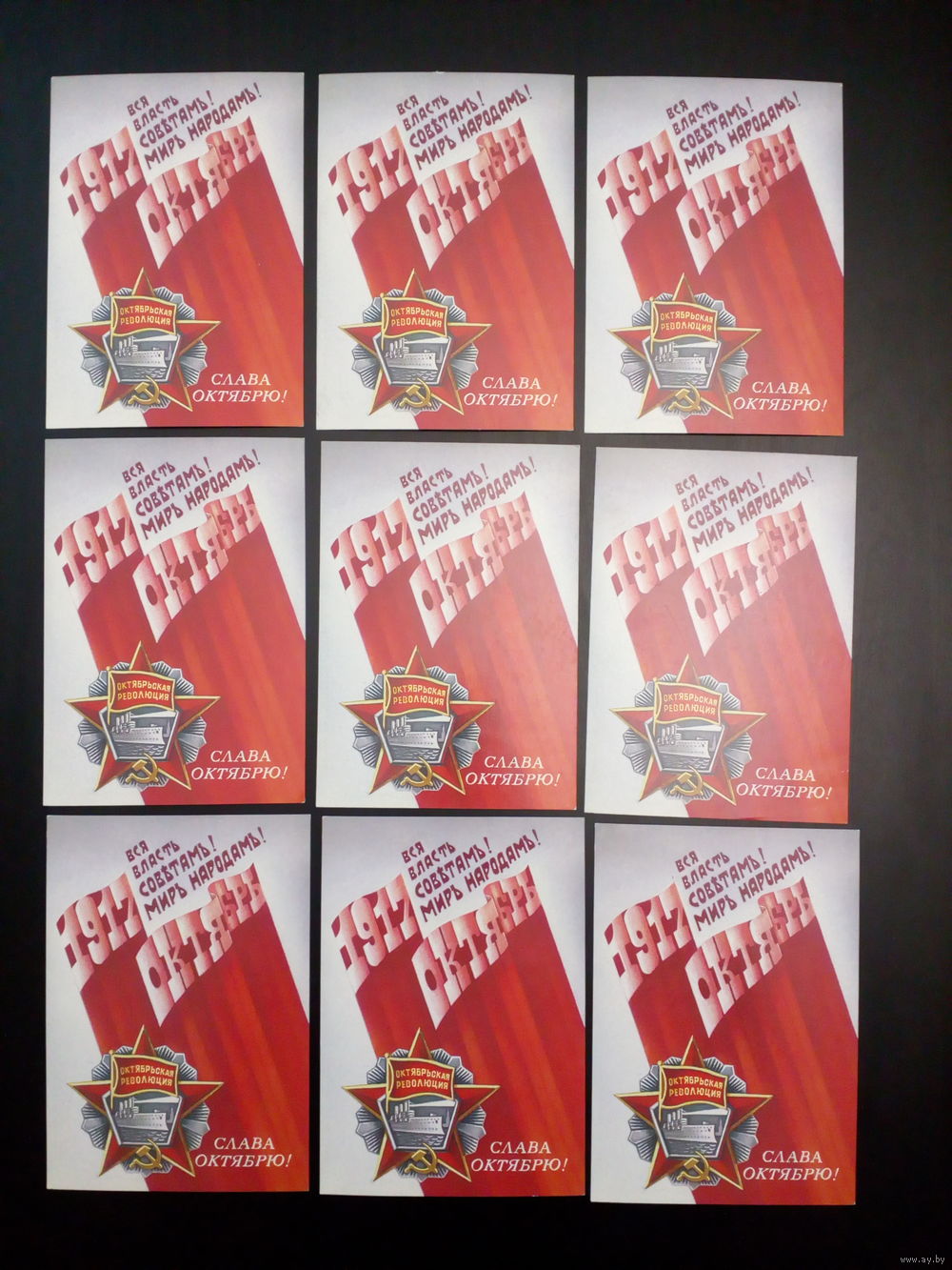 Открытки СССР "Слава Октябрю!" 9 шт., новые, состояние отличное, на фото
