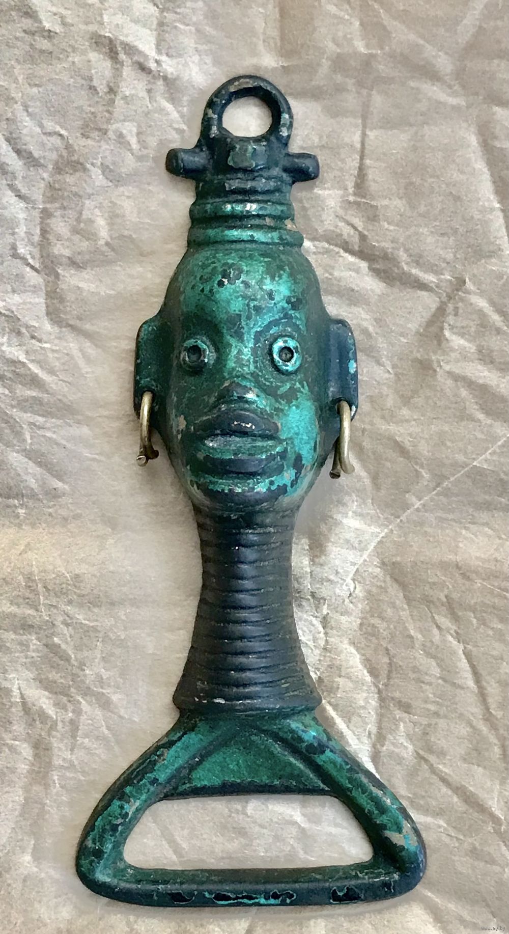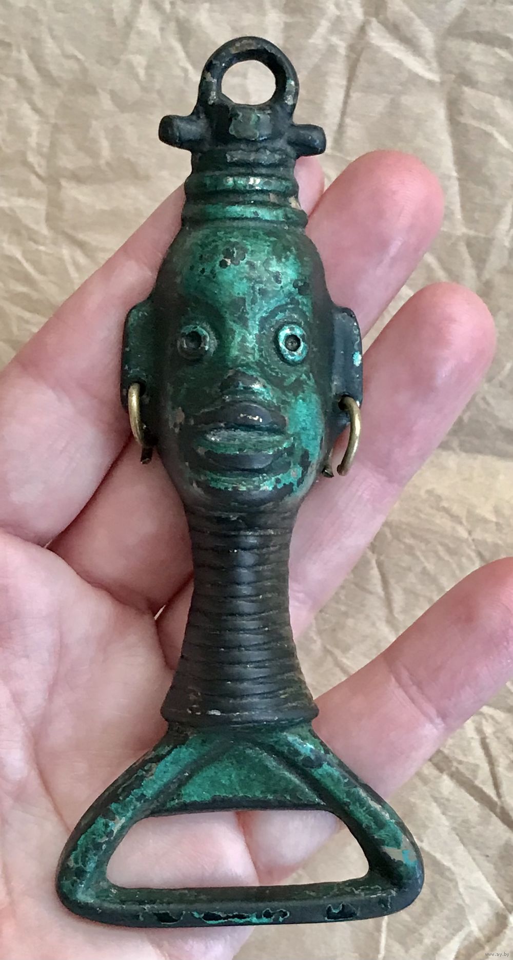 Винтажная открывалка для бутылок из бронзы. Высота 11,5см.