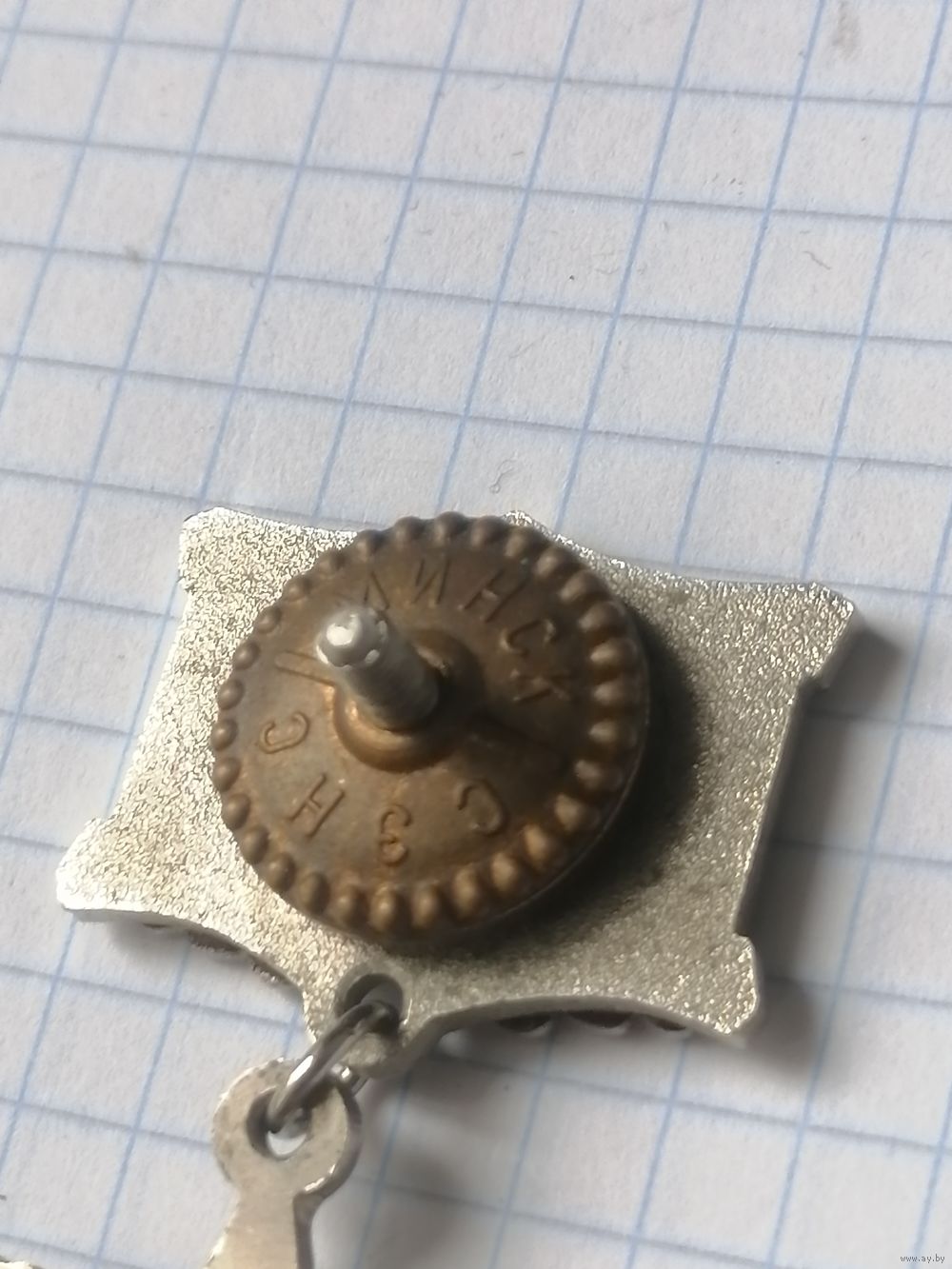 • Нагрудный знак с помощью ушка и кольца соединяется с прямоугольной колодкой шириной 24 мм, покрытой ювелирной эмалью. Верхняя и нижняя части колодки имеют фигурные выступы, в нижней части располагается рельефное изображение двух дубовых листьев.