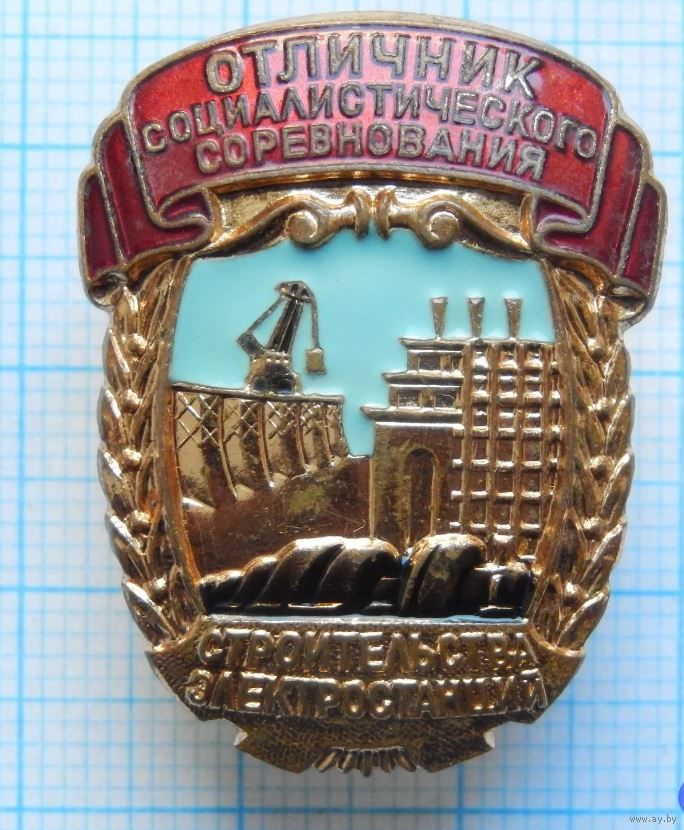 Отличник соцсоревнования строительства электростанций , отличный знак в коллекцию !
