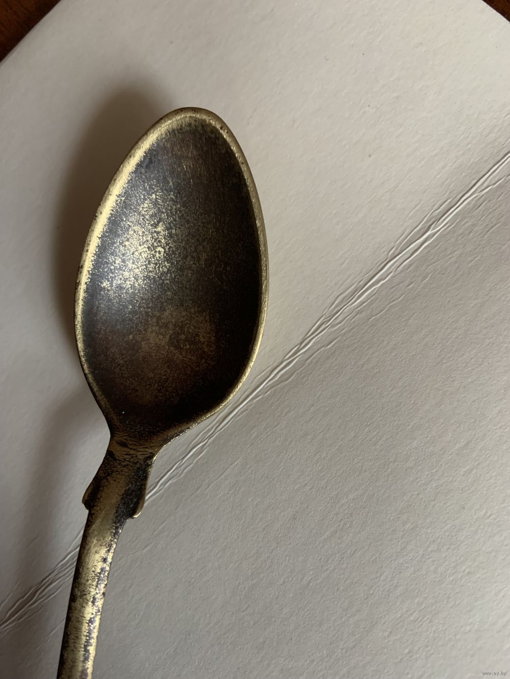 Отличного качества медная чайная ложечка. Медь естественно не в чистом виде но её много в сплаве -ложка была покрыта красной окисью и сама ложка довольно мягкая!