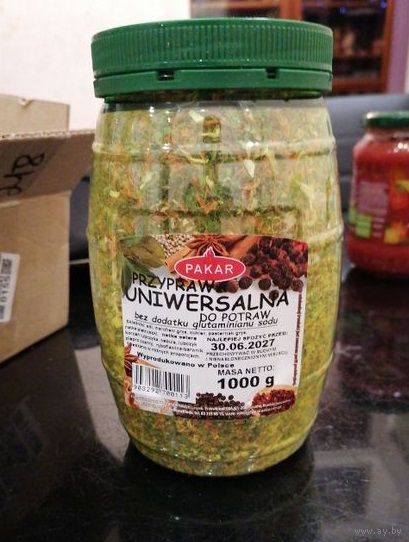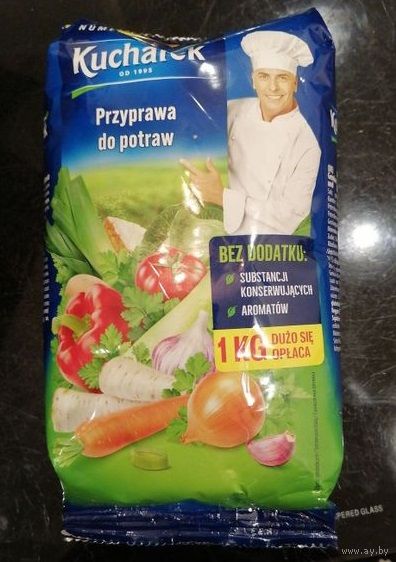 Отличные польские приправы по 1кг, любая всего 25руб. Кухарек - соль, овощи, морковь, петрушка, сельдерей, пастернак, помидор, сладкий перец, чеснок, смесь сухих овощей, усилитель вкуса и аромат (глутамат натрия). Приправа универсальная - соль, морковь, сахар, пастернак, петрушка обыкновенная, сельдерей, корень любистока, лук, любисток, черный перец.