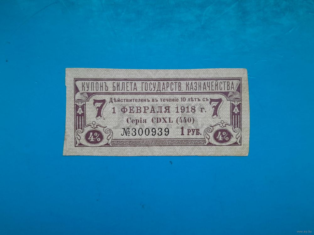 Отрезной купон БГК 1 рубль. Российская империя. 1915 год. Распродажа