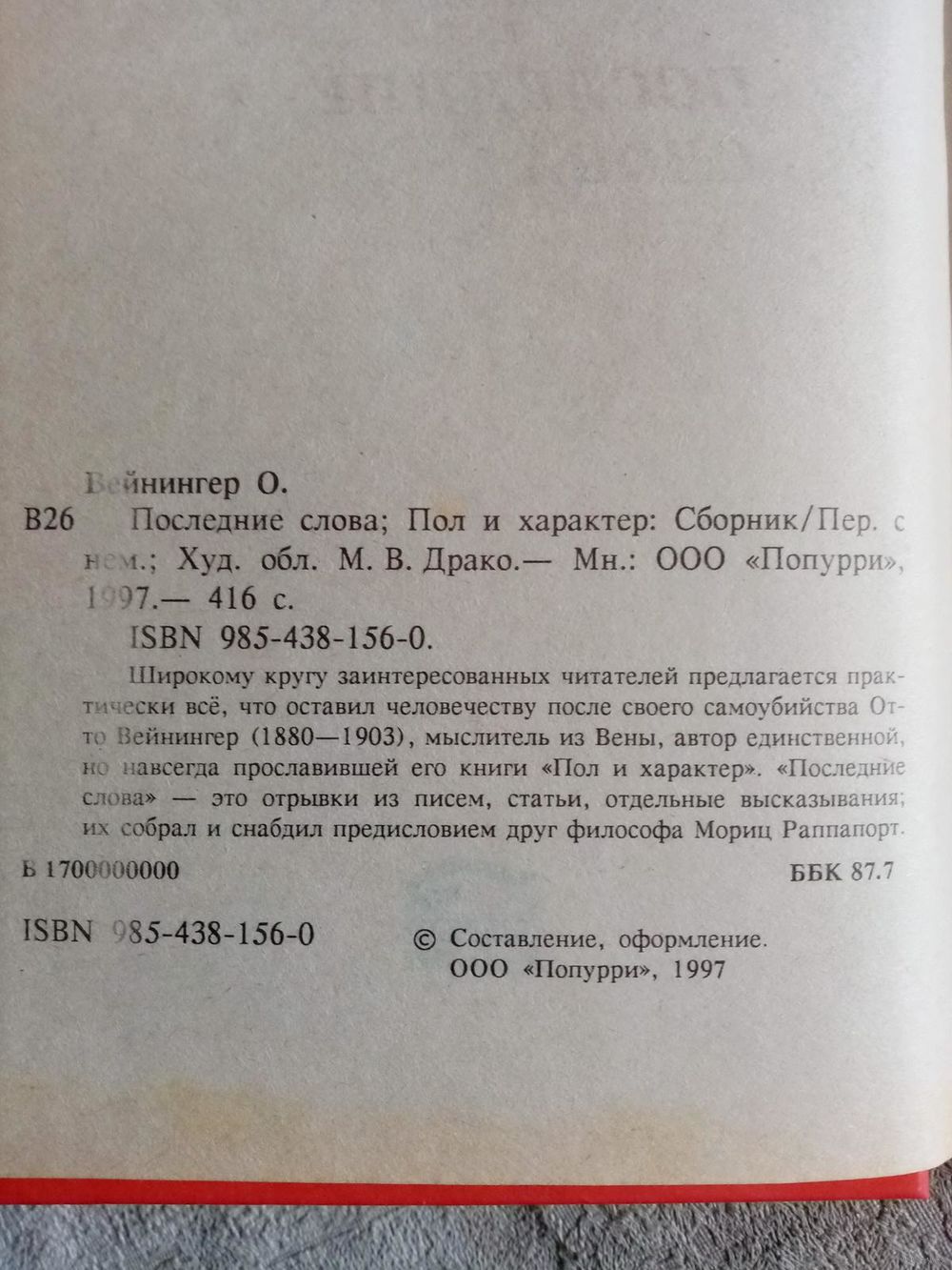 | Автор | Отто Вейнингер. |