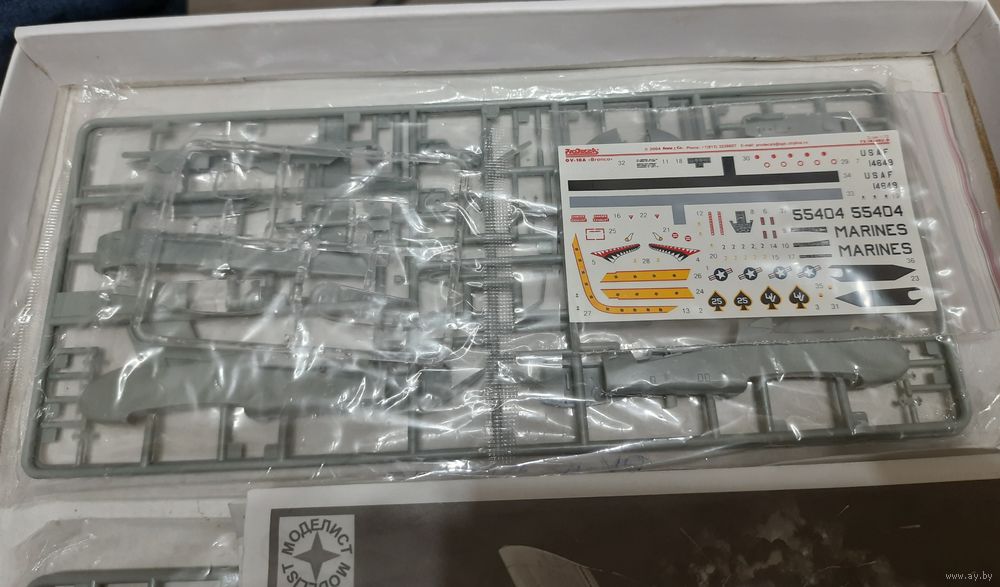 Лучшая модель Бронки в 72-м масштабе. Литники просто приятно держать в руках - литье очень аккуратное и четкое, детализация отличная, крой тонкий, но хорошо выделенный. Фонарь простым не назовешь - он состоит из четырех частей, придется повозиться. Прилагается вполне исчерпывающий комплект вооружения: бомбы Mk. 82, пара "Сайдвиндеров", пара 4-х ствольных контейнеров с ракетами "Zuni" и 19-ствольных с НУРС Mighty Mouse".