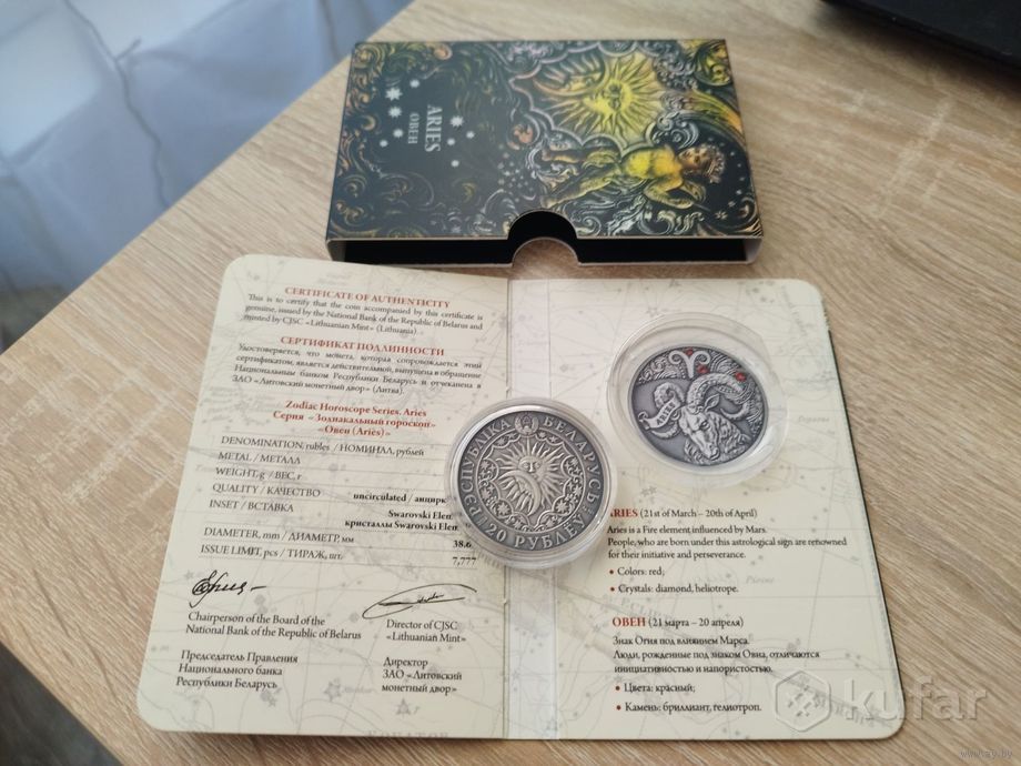Добрый день, продам коллекционную монету национального банка Республики Беларусь, Овен из серии Зодиакальный гороскоп