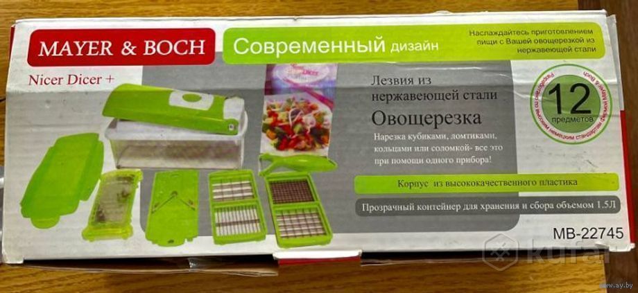 Набор б\у из 12 частей прослужит отличным помощником на кухне. Значительно уменьшится время нарезки. Он прост в использовании и не занимает много места при хранении.