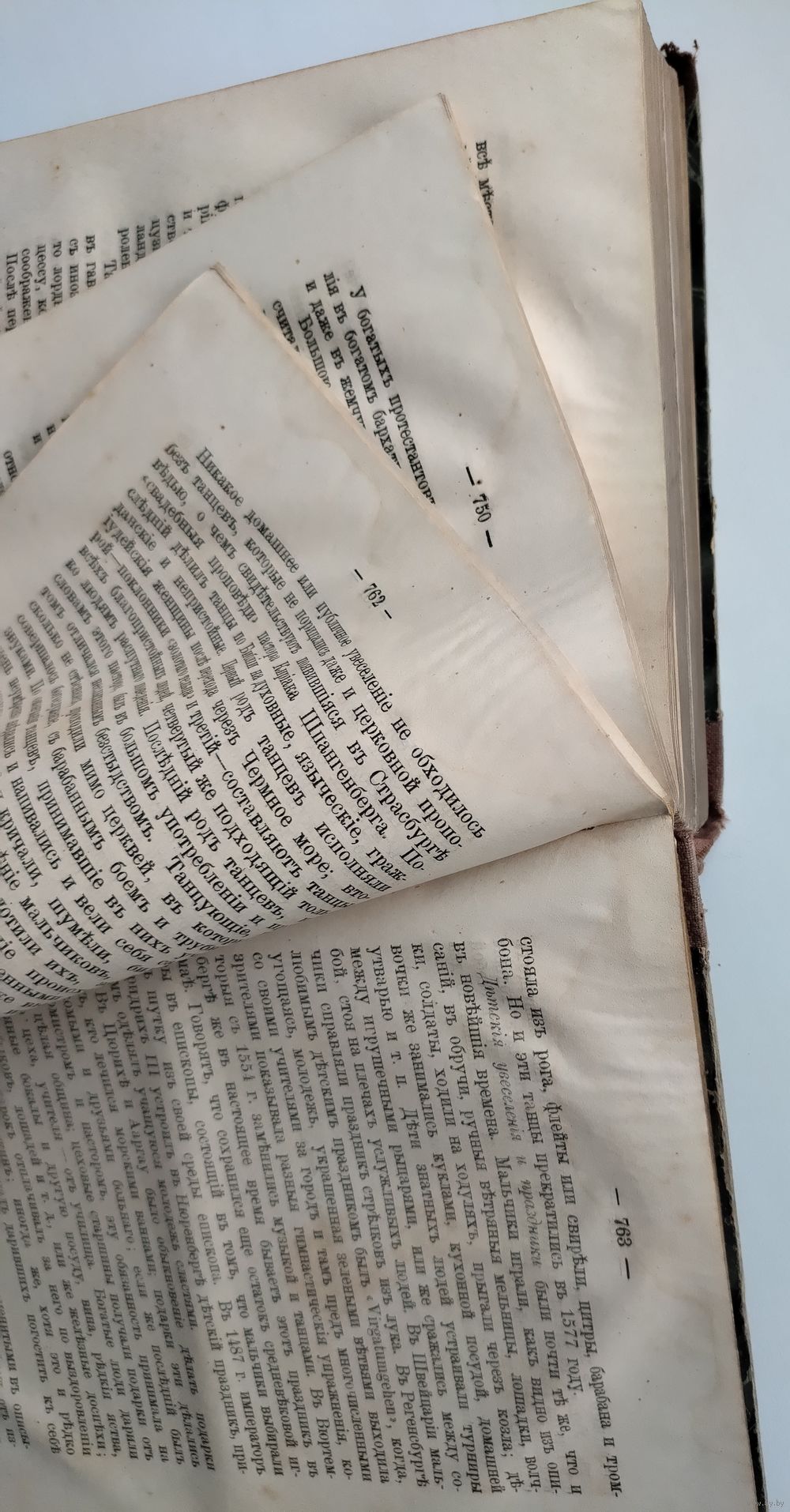| но с ньюансами - следы от влаги в верхней части блока страниц в конце книги, есть пятна на нескольких страницах. Блок страниц крепкий. | |