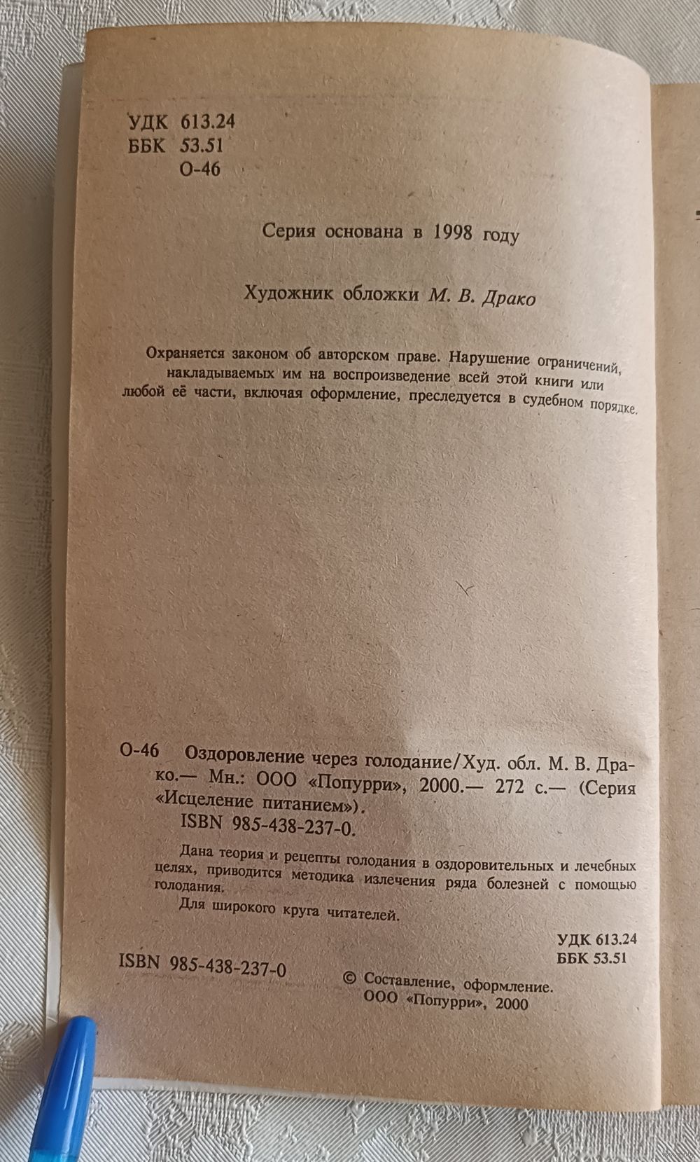 Оздоровление через голодание. Наталья Макарова. Мн.: ООО «Попурри», 2000. — 272 с. — (Серия «Исцеление питанием»), мягкая обложка, обычный формат.