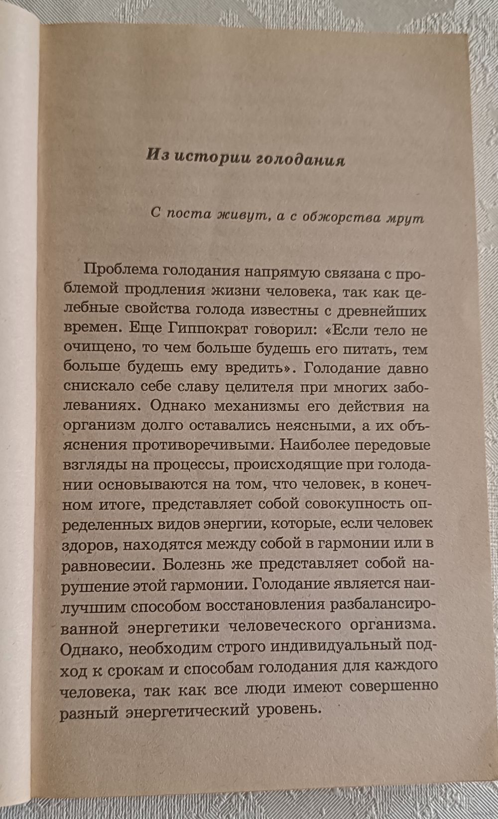 Дана теория и рецепты голодания в оздоровительных и лечебных целях, приводится методика излечения ряда болезней с помощью голодания.