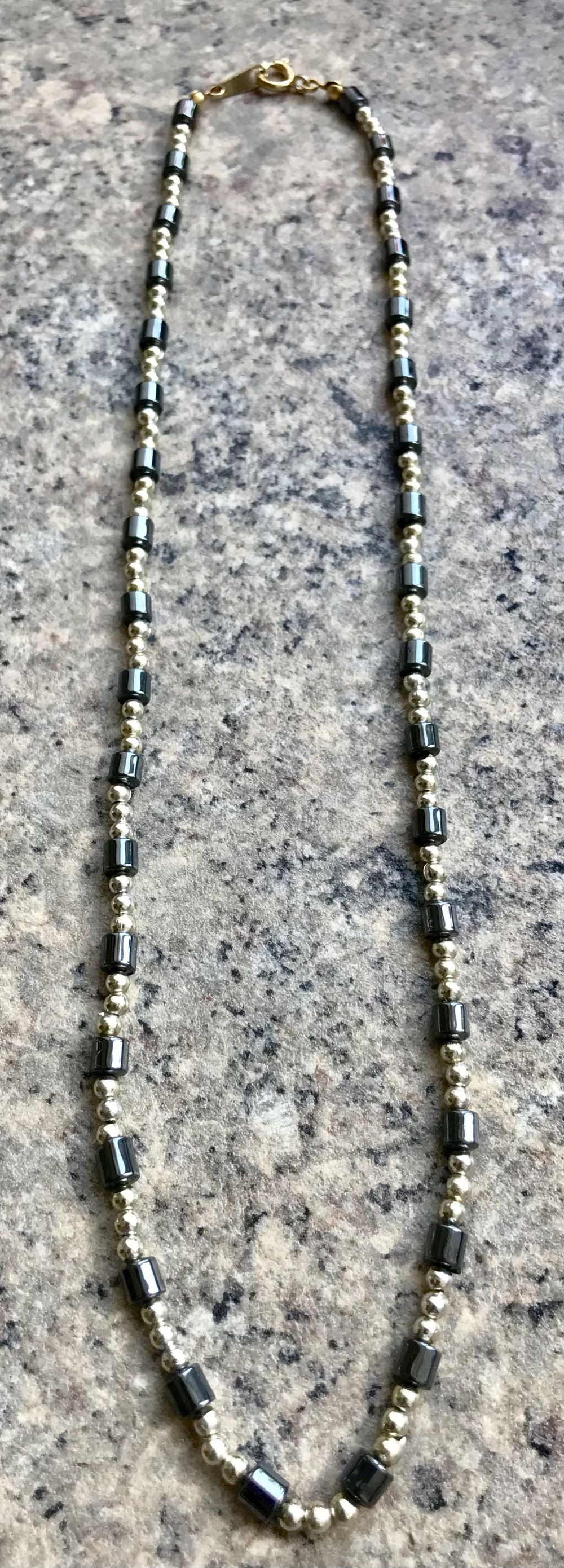 Ожерелье из гематита и пластиковых бусин золотистого цвета, длина 46см., состояние хорошее.