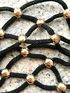 Ажурное ожерелье из бижутерного сплава чёрного цвета и золотистых элементов. Длина 18см.+9см. доп.цепочка. Ширина центральной части 4см. Состояние хорошее.