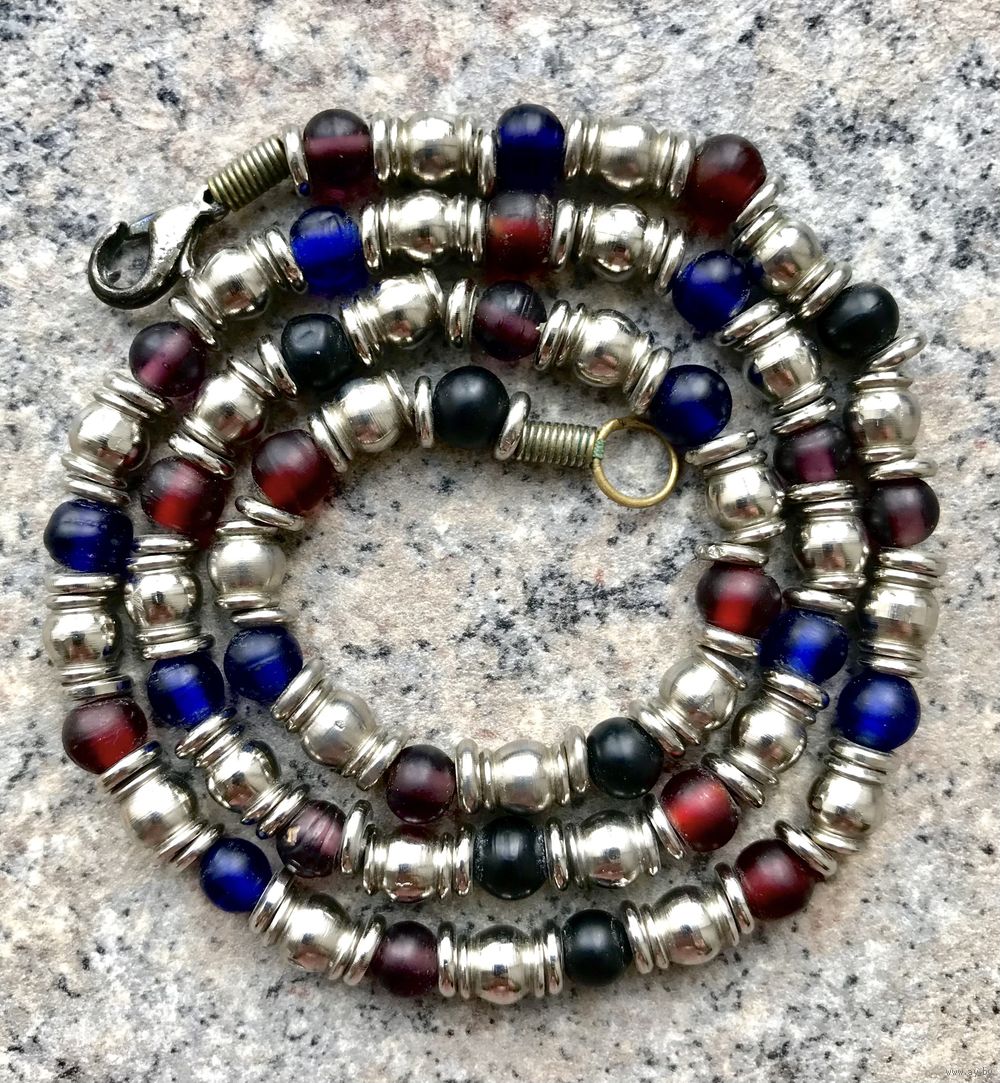 Винтажное ожерелье из стекла и металла, длина 49см., состояние хорошее.