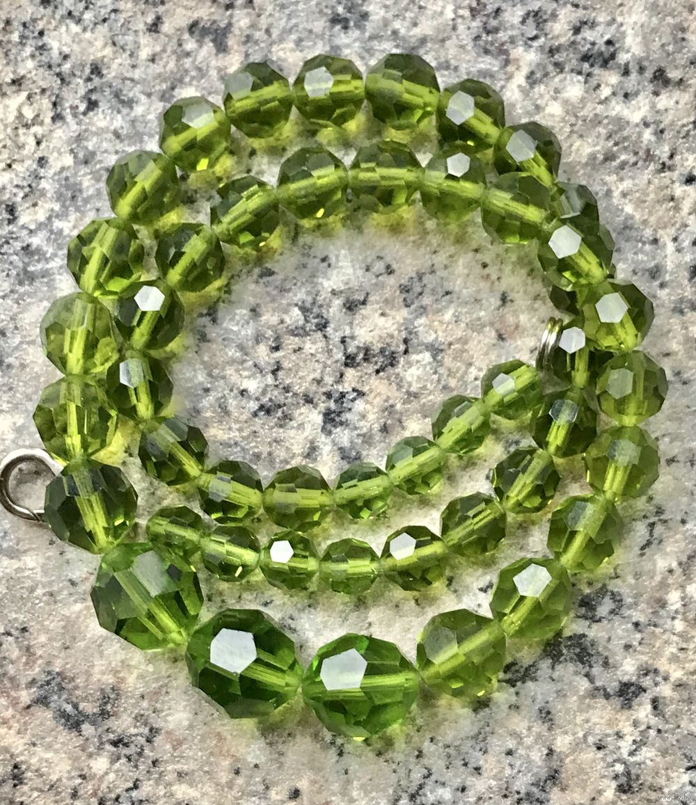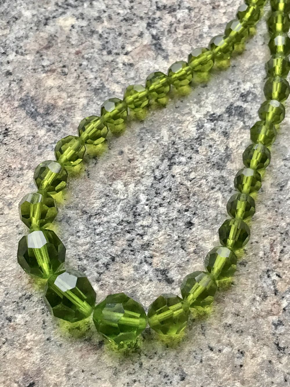 Ожерелье из винтажных гранённых стеклянных бусин, нанизанных на леску. Размер бусин от 0,6см. до 1,7см. Длина 38см. Состояние хорошее.