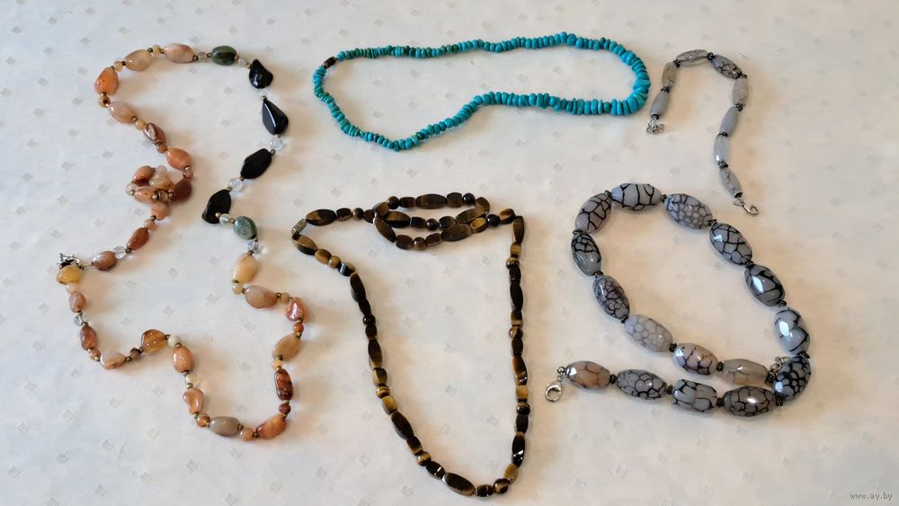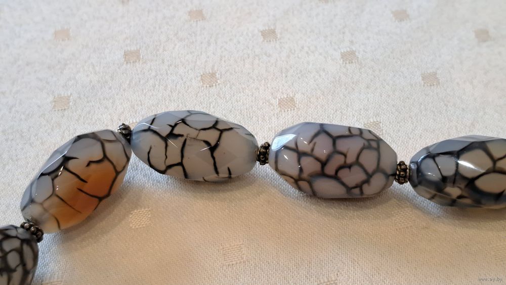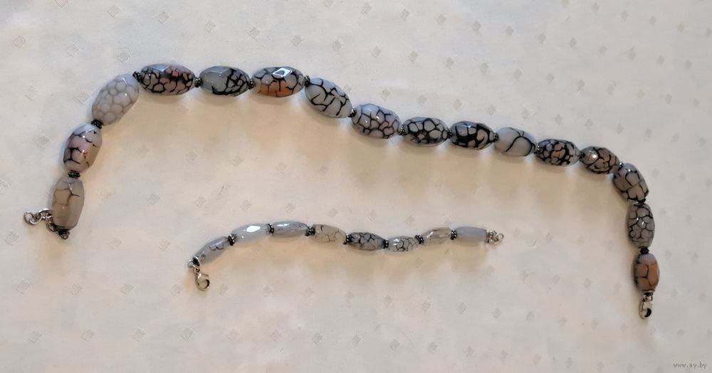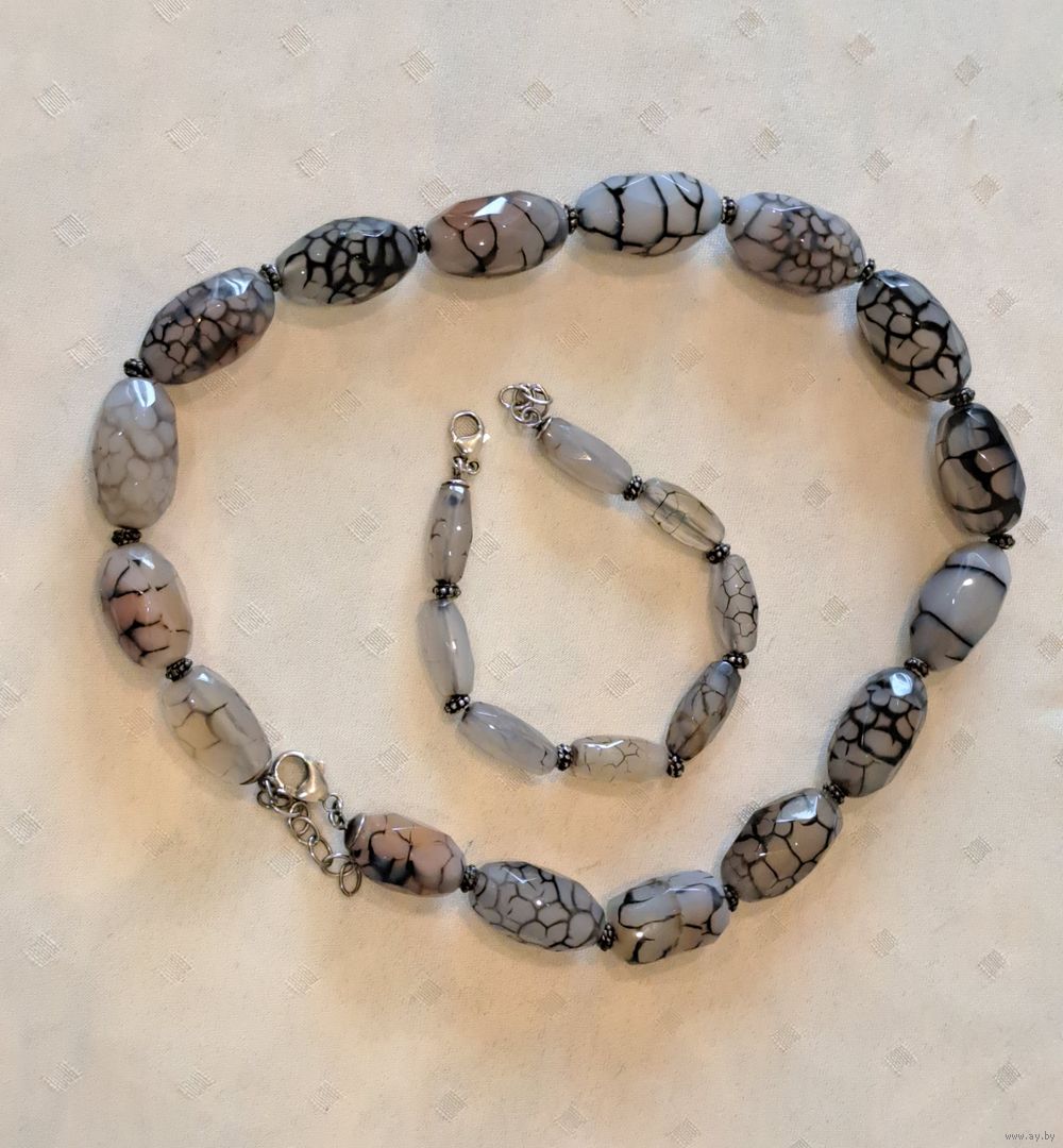 Ожерелье / Бусы + браслет агат "Вены дракона" из Германии длина 50 см.
