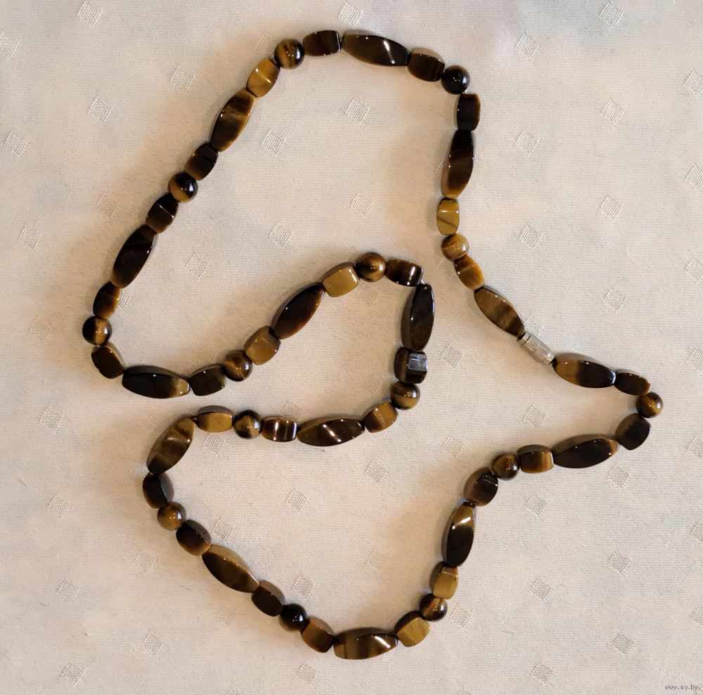 Ожерелье / Бусы из камня тигровый глаз приобретено в Германии длина 68 см.