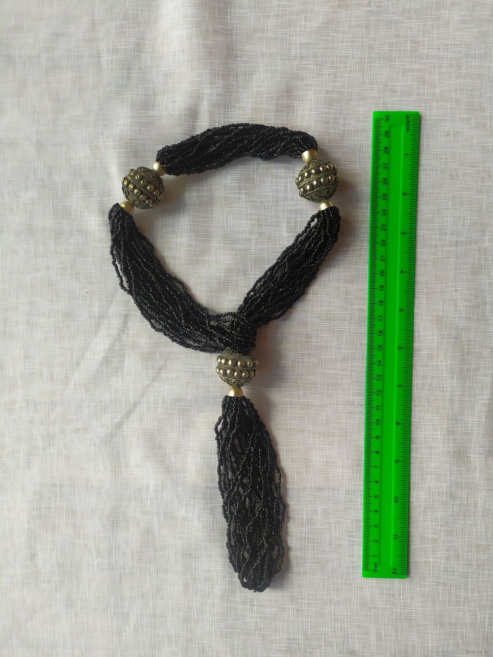 Длина 60 см. Вероятно в этом ожерелье не хватает застежки, которую дополнительно можно докупить и смотировать ( образец на последнем фото).