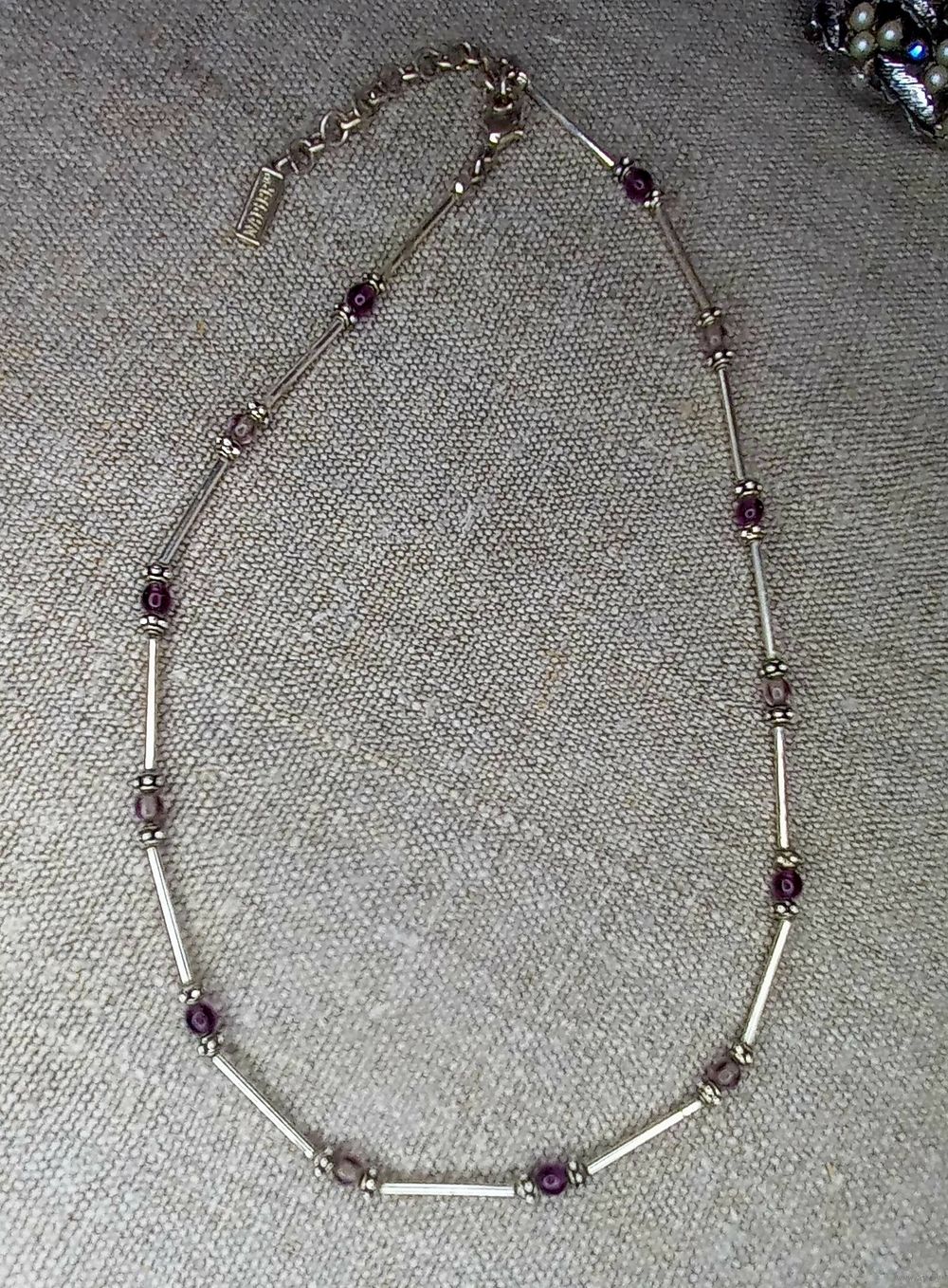 Американская винтажная бижутерия компании Napier. Нежное украшение из бижутерного сплава и аметистового стекла.Дл 41+6 см