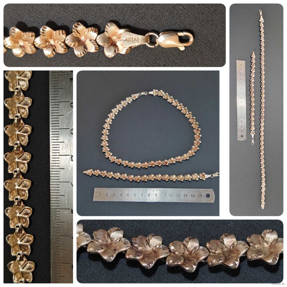 Комплект прессованное серебро цепочка браслет Турция компания Antasgold 925 проба Длинна колье 44 браслет 20