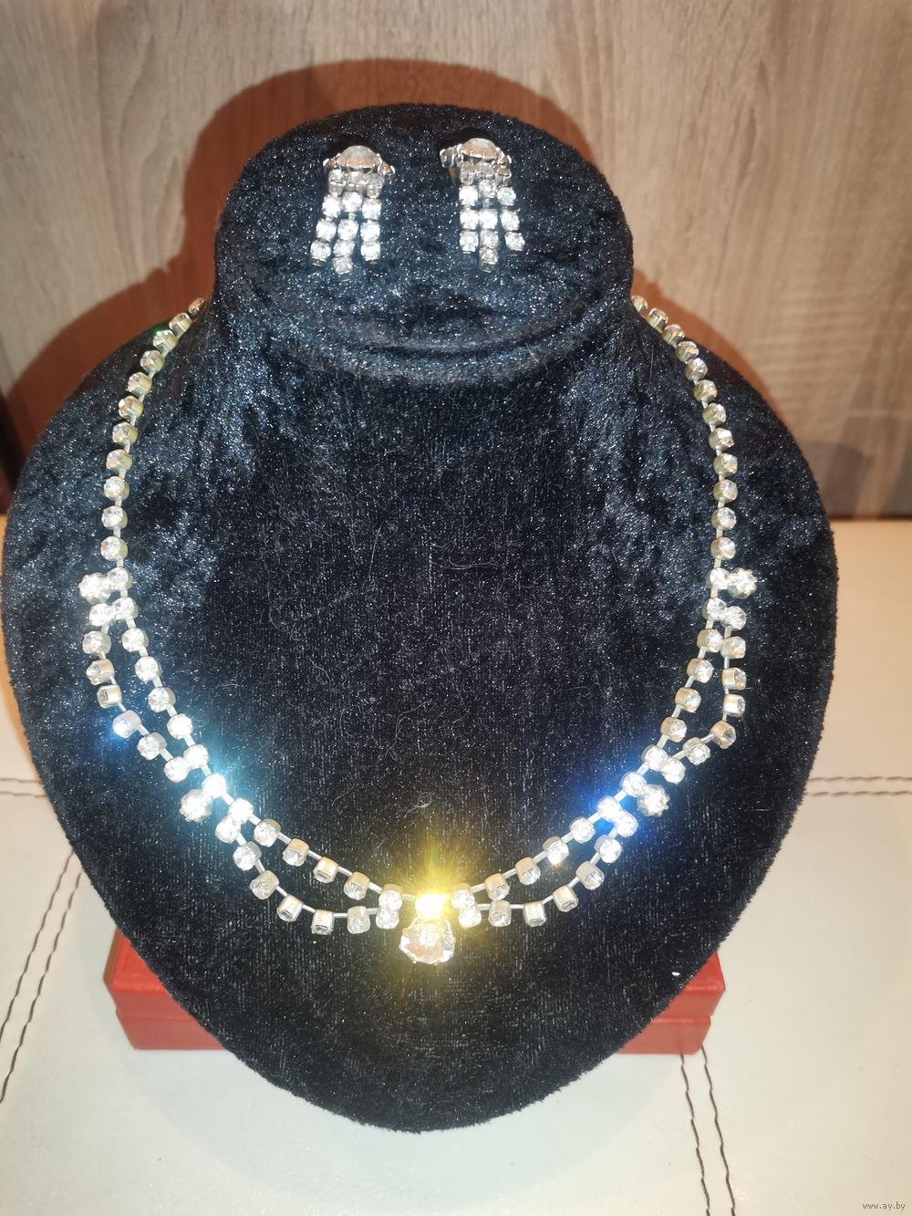 Ожерелье с клипсами, длина 55 см., отсутствует одна вставка возле застёжки.