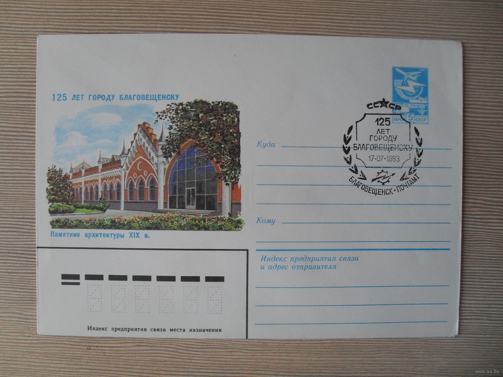 П-5. ЧИСТЫЙ КОНВЕРТ СССР. СПЕЦГАШЕНИЕ. 125 ЛЕТ ГОРОДУ БЛАГОВЕЩЕНСКУ. худ. В. ШАТИХИН. 1983 г.