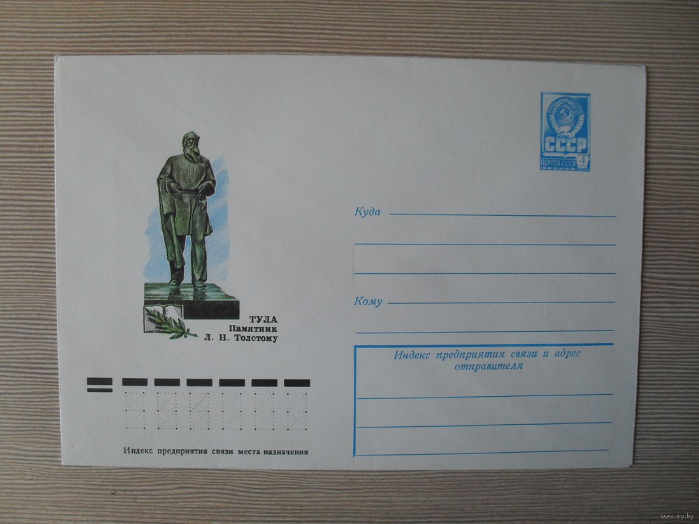 П-5. ЧИСТЫЙ КОНВЕРТ СССР. ТУЛА. ПАМЯТНИК Л. Н. ТОЛСТОМУ. худ. В. ШАТИХИНА. 1978 г.