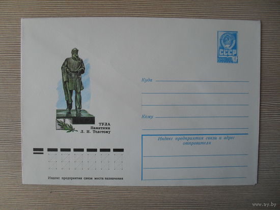 П-5. ЧИСТЫЙ КОНВЕРТ СССР. ТУЛА. ПАМЯТНИК Л. Н. ТОЛСТОМУ. худ. В. ШАТИХИНА. 1978 г.