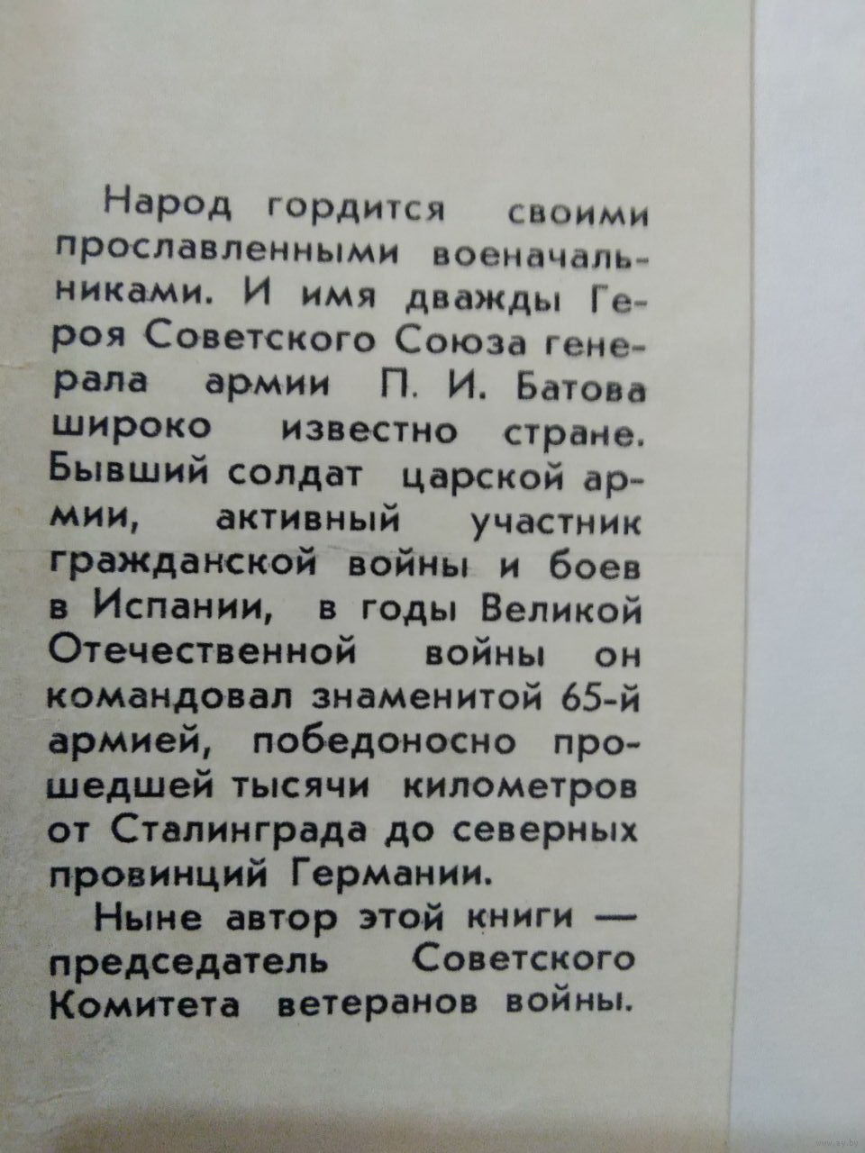 Серия Военные мемуары. Год выпуска 1974. Автор Батов Павел Иванович. Формат издания 84x108/32. Сохранность книги Хорошая.