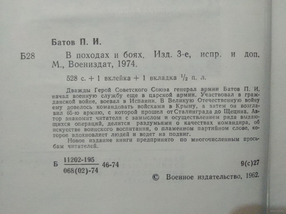 Автор на обложке П. И. Батов. Тип книги Букинистика. Количество страниц 528. Издательство Воениздат.