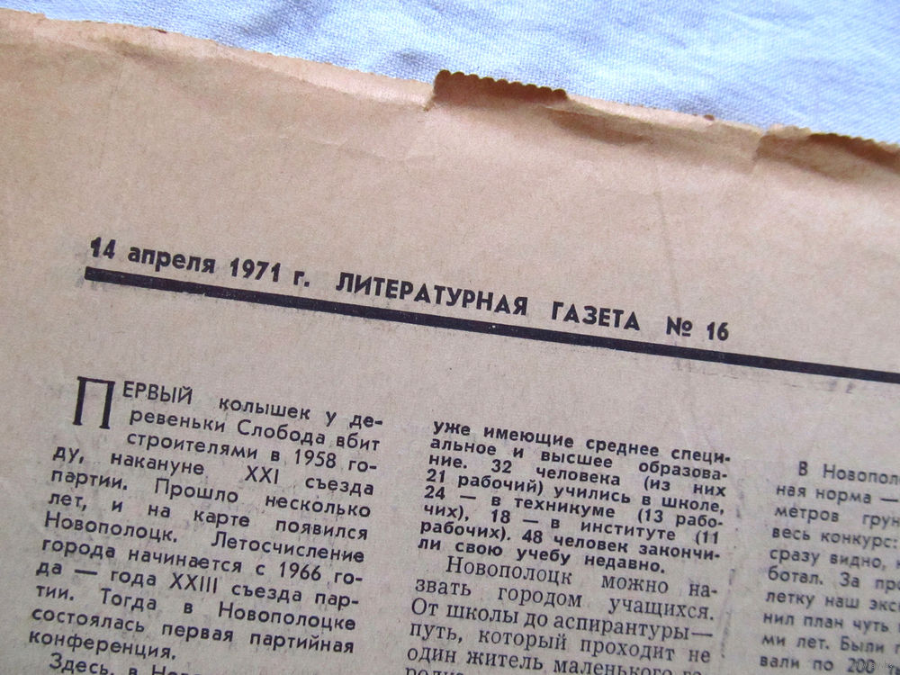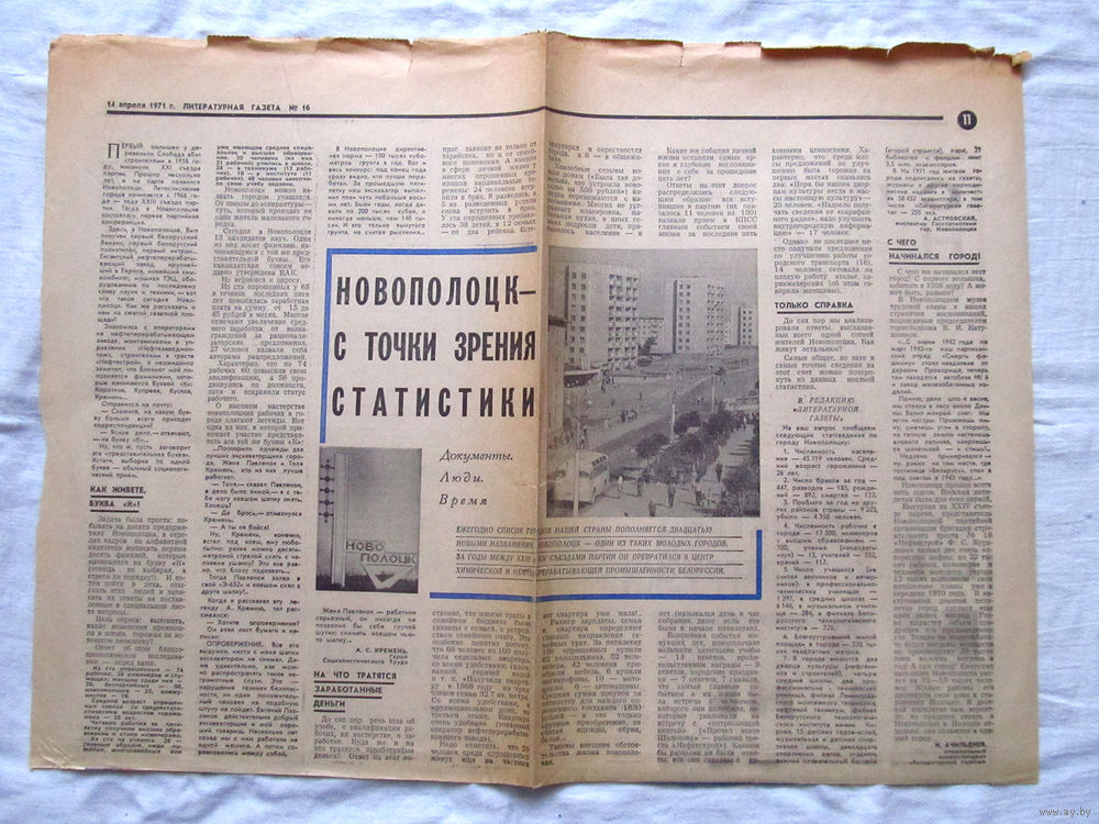 П2 25-34 1230 Газета Литературная газета Номер 16 14 Апреля 1971 Вырезка Новополоцк с точки зрения статистики