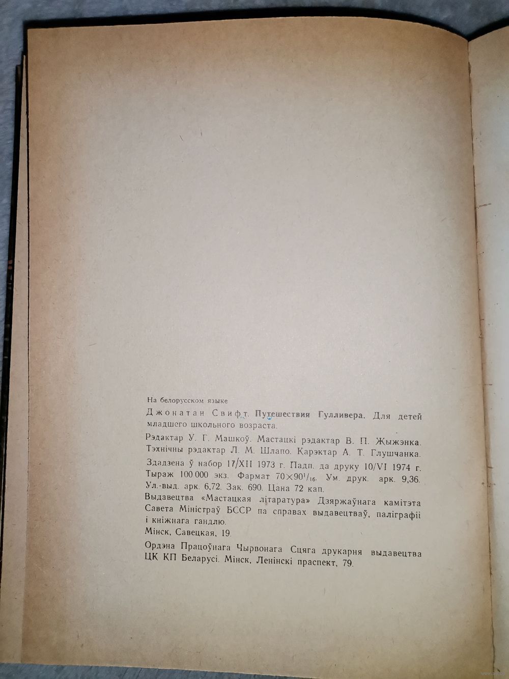 Падарожжы Гулівера. Д. Свіфт. 1974г. Состояние на фото. Отправка только Европочтой