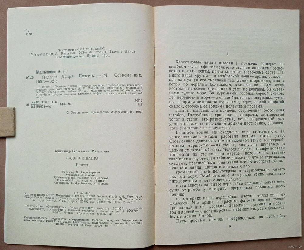 Падение Даира. Александр Малышкин. Изд-во "Современник". 1987г. Худ. И. Линарт.