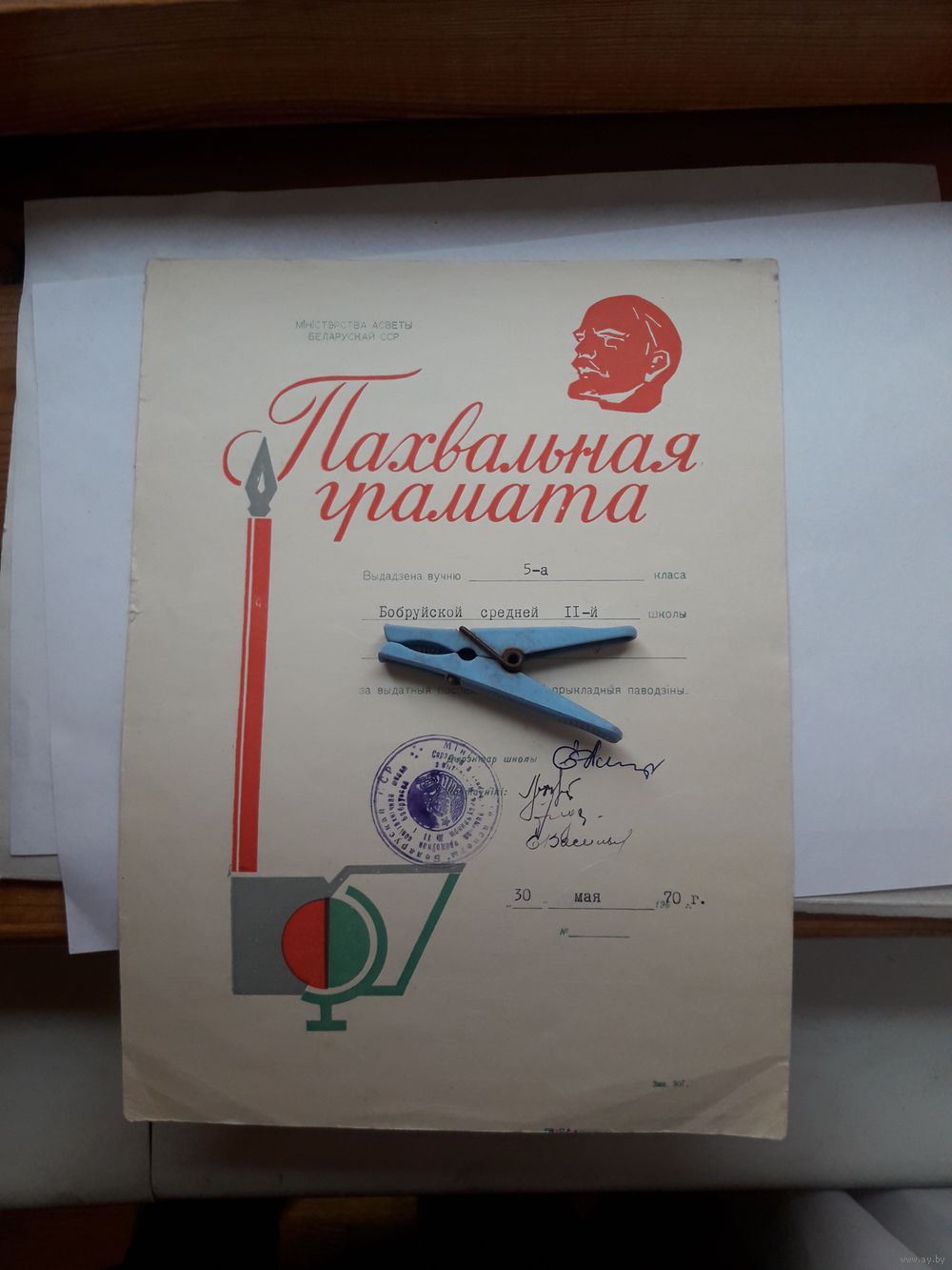 Пахвальная грамата Мин. Асветы БССР 1970 (11 школа Бобруйск)