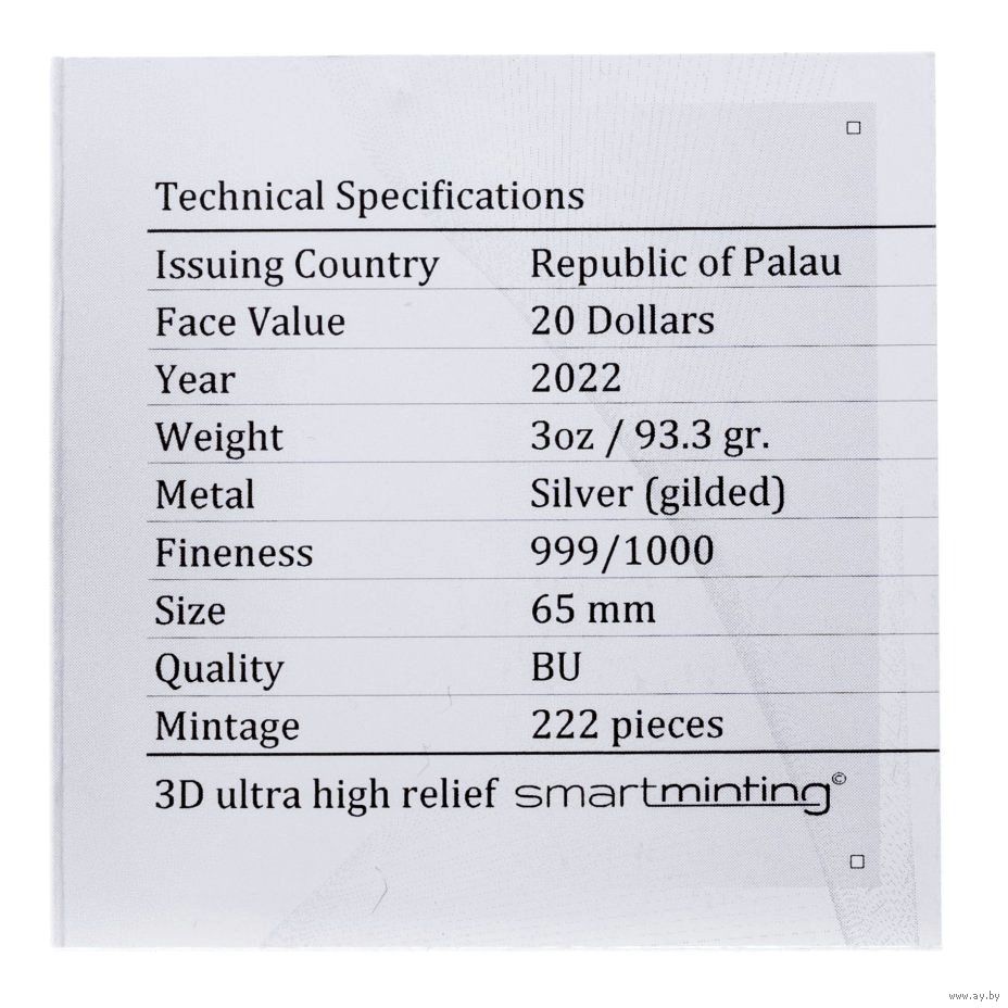 Детализация и высокий рельеф монеты достигнут благодаря применению уникальной технологии чеканки Smartminting.