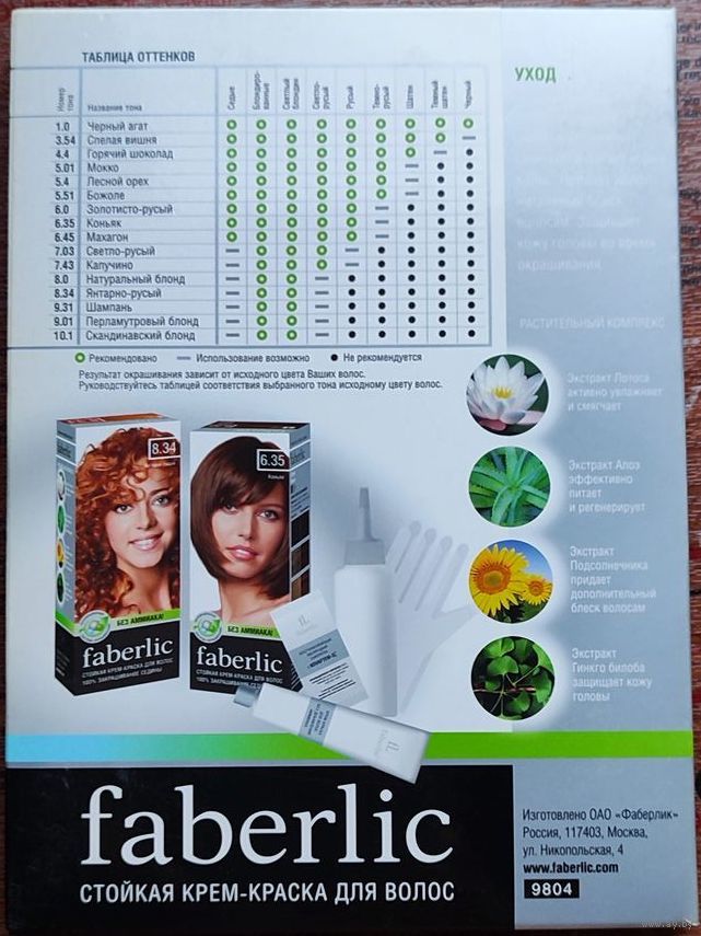 Палитры красок для волос Faberlic (9804) и Krasa (8907)
