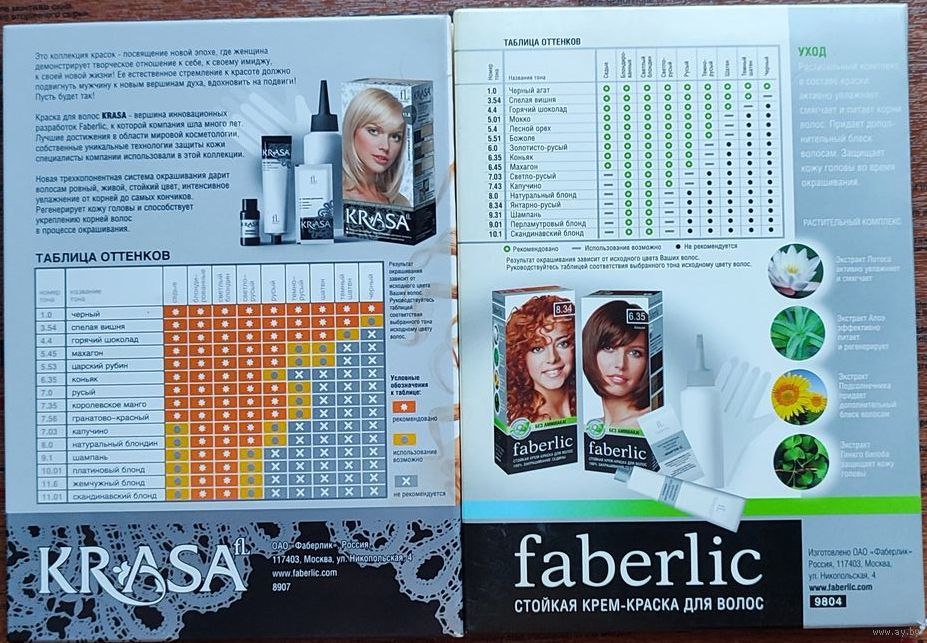 Палитры красок для волос Faberlic (9804) и Krasa (8907)