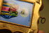 Подвесная икона в фигурном окладе на бархатной подложке.