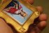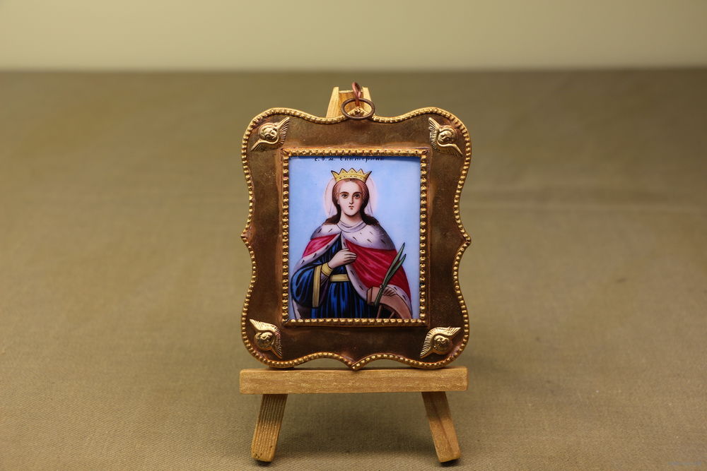 Подвесная икона в фигурном окладе на бархатной подложке.